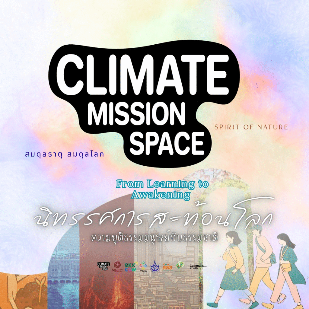 การเดินทางผ่านการเรียนรู้ เข้าใจ ปัญหา เชื่อมโยงกับจิตวิญญาณธรรมชาติ และ “นำไปสู่การตื่นรู้” เพื่อกระตุ้นการเปลี่ยนพฤติกรรมระยะยาว สร้างสรรค์โดยเยาวชนและเครือข่ายด้านสิ่งแวดล้อม Climate Mission Space จึงเป็นทั้งพื้นที่เรียนรู้และพื้นที่ของความหวัง “เพราะเมื่อเรากลับมาดูแลธาตุ สมดุลโลกก็จะกลับมาดูแลเราเช่นกัน”