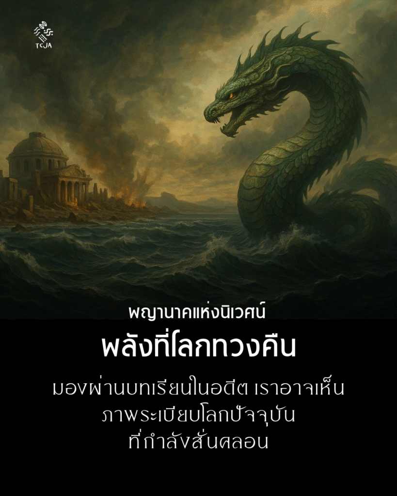 แต่จากสายตาเอเชียตะวันออกเฉียงใต้ เราเห็นสิ่งนั้นในอุปมาที่อ่อนโยนและซับซ้อนกว่า “พญานาคแห่งนิเวศน์” พลังของโลกที่ไม่ต้องมีรูปทรงอำนาจแต่สามารถบิดเบือนทุกระเบียบที่ไม่เคารพธรรมชาติ