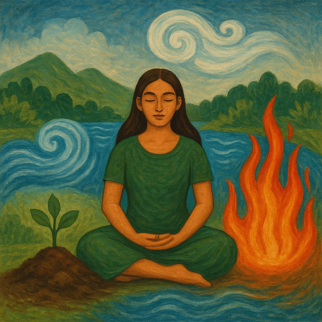 ทุกวัฒนธรรมสร้างขึ้นจากการเอาธรรมชาติเป็นศูนย์กลาง การเปลี่ยนผ่านชีวิตตั้งแต่เกิด แก่ เจ็บ ตายล้วนสัมพันธ์กับธรรมชาติ ธรรมชาติจึงไม่ใช่เพียงฐานดำรงชีพ แต่คือแกนกลางทางจิตวิญญาณ ดังความเชื่อเรื่องธาตุทั้งสี่ คือ ดิน น้ำ ลม ไฟ ของสังคมเอเชียที่ถือว่าร่างกายและจักรวาลประกอบด้วยธาตุเหล่านี้ ธาตุทั้ง 4 ยังเป็นองค์ประกอบร่างกายและจิตวิญญาณมนุษย์ สุขภาพจึงขึ้นอยู่กับสมดุลของธาต เช่นนั้น สุขภาวะโลกก็คือสมดุลแห่งธาตุด้วยเช่นกัน