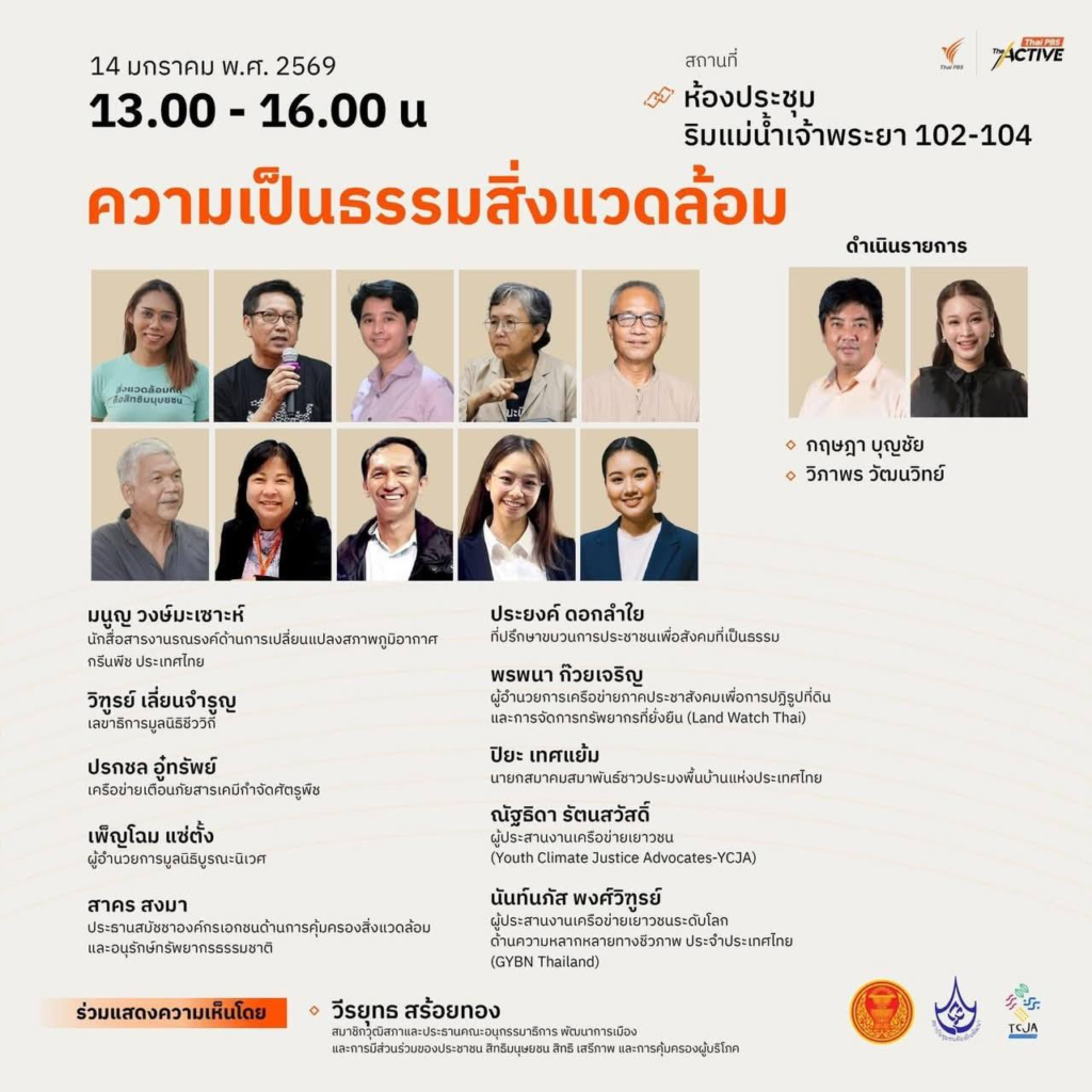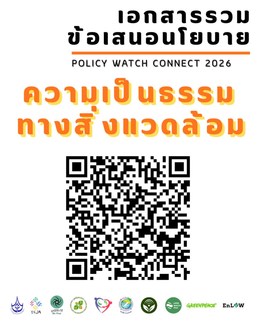 วันนี้พวกเรา TCJA ถึงมาร่วมกันเป็นผู้ร่วมก่อการจัด policy watch เรื่องความเป็นธรรมสิ่งแวดล้อม โดยดึง “ตัวตึง” ของขบวนการขับเคลื่อนด้านสิ่งแวดล้อม ทรัพยากรจากภาคประชาสังคมทุกประเด็น มารวมวิเคราะห์และออกแบบทิศทางนโยบายความเป็นธรรมสิ่งแวดล้อมเพื่อเสนอต่อพรรคการเมือง