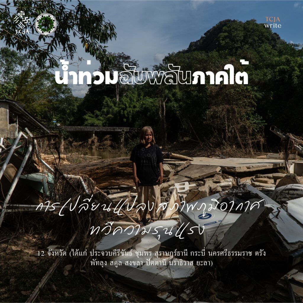 น้ำท่วมฉับพลันในพื้นที่ภาคใต้แสดงให้เห็นชัดเจนสภาพอากาศของโลกแปรปรวน โลกรวนอย่างหนัก เป็นภาระหนักสำหรับคนชายขอบที่ไม่สามารถฟื้นฟูตัวเองได้ แม้กระทั่งอาคารบ้านเรือน สิ่งของเครื่องใช้จำเป็น เช่น ชุดเครื่องนอน เสื้อผ้า หม้อหุ้งข้าว อุปกรณ์ทำครัวต่าง ๆ เพื่อดำรงชีวิตอยู่รอด ก็โดนพรากจากออกไปจากเหตุการณ์น้ำท่วมฉับพลันครั้งนี้