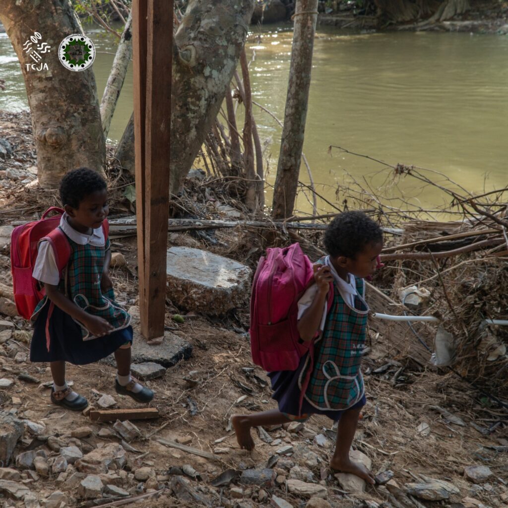 เมื่อเกิดภัยพิบัติน้ำท่วมอย่างรุนแรงจากการเปลี่ยนแปลงสภาพภูมิอากาศ ทำให้สะพานเส้นทางสัญจรนี้ขาด วิธีเดียวนอกจากรอให้มีการช่วยเหลือคือ เด็ก ๆ ในกลุ่มชาติพันธ์ุ “มานิ” ต้องพายเรือ เพื่อข้ามไปอีกฝั่ง หวังว่าจะได้ไปโรงเรียนในทุก ๆวัน