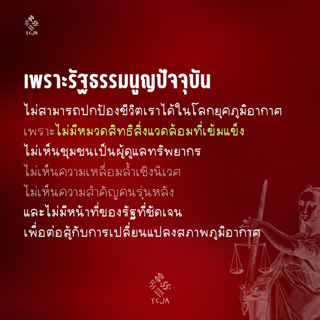 - เพราะรัฐธรรมนูญปัจจุบัน ไม่สามารถปกป้องชีวิตเราได้ในโลกยุคภูมิอากาศ