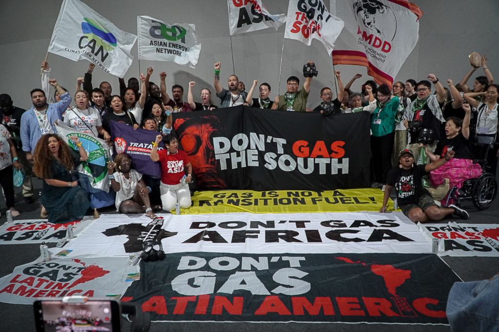 นอกจากถ่านหิน ก๊าซก็เป็นสมรภูมิสำคัญของการต่อสู้ใน COP แคมเปญ Don’t Gas the South เน้นให้หยุดลงทุนโครงการก๊าซในประเทศกำลังพัฒนา ไม่ว่าจะเป็นฟอสซิลก๊าซหรือ LNG เพราะ